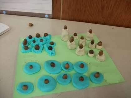 1年生の教室の後ろのロッカーの上には,どんぐりが置いてあります。