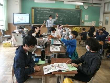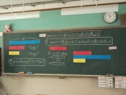 6年生は,外国語科に取り組んでいます。3年生の算数では,1mをもとにしてあまりの大きさの表し方を考えました。