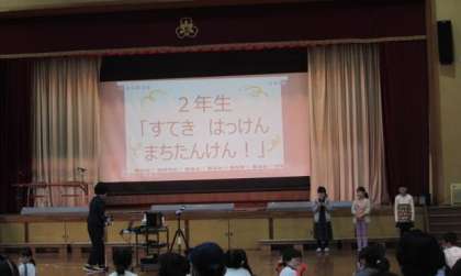 生活科で市原野の町探検をした様子を,ビデオで交えながら発表しました。