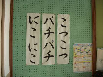 6年生は,算数の学習で,表を使いながら変わり方の規則性を導き出しています。(習字は,教室の後ろにはってあるものです。)