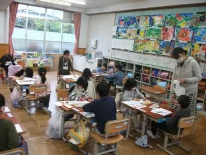 1年生は,算数で紙芝居を使った問題作りに取り組んでいます。