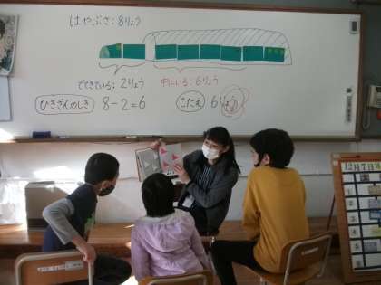 5年生は,体育でバスケットボールに取り組んでいます。3組は,絵本を使いながら,数の学習をすすめています。