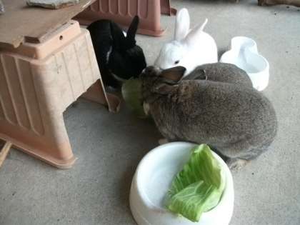 朝のごちそうは,新鮮キャベツです。