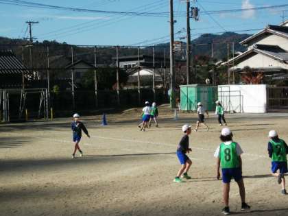 4年生は,学年合同でサッカーのゲームに取り組んでいます。