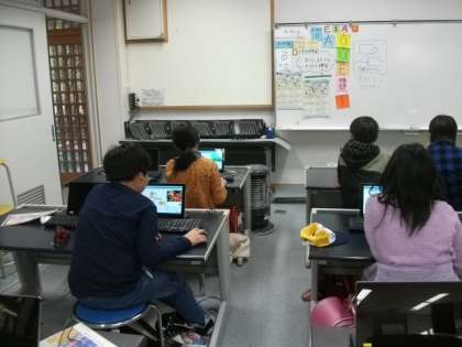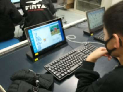 部活動の様子です。コンピュータ部では,スクラッチを使ったプログラミングに取り組んでいます。