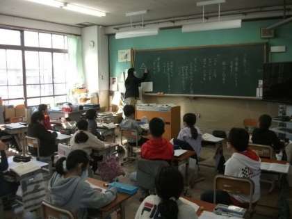 3組は,今日1日の予定を確認してから国語の学習を始めました。3年生は,国語で「三年とうげ」を読み進めています。