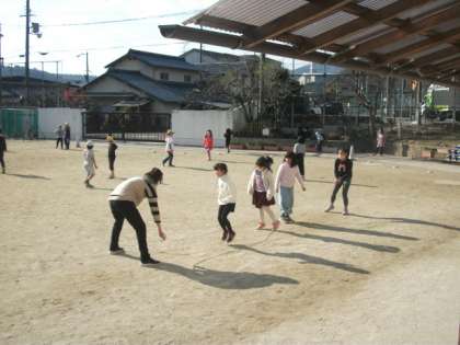 先生と,大縄跳びをしているお友達もいます。