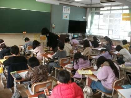 1年生と2年生の学習の様子です。2学期のまとめの復習問題に取り組んでいます。