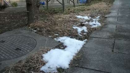 特別棟前の百葉箱や体育館の屋根にも雪が残っています。