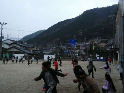 冷たい風が吹いていましたが,元気よく外で遊ぶ子どもたちがたくさんいます。