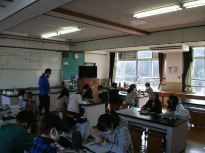 (理科室では,冬休み中に設置したエアコンを稼働させています。)