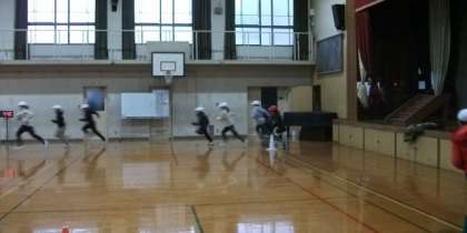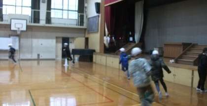 運動場が使えないので,体育館で朝マラソンに取り組んでいます。
