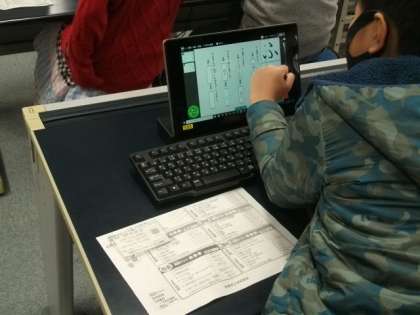 4年生が,タブレットドリルを使って国語の復習問題に取り組んでいます。