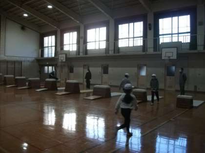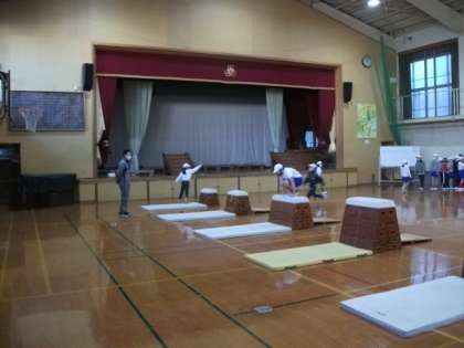 3年生は,跳び箱運動に取り組んでいます。入念に準備運動をしてからはじまりました。