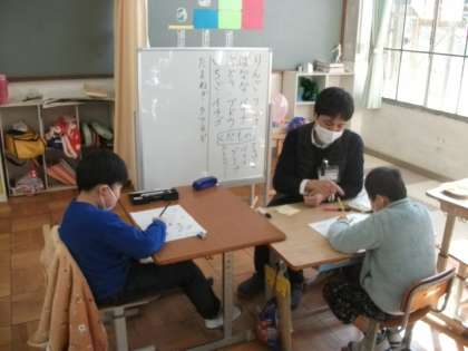 3組の3時間目は国語で,個別にプリントに取り組んだり漢字クイズに取り組んだりしています。