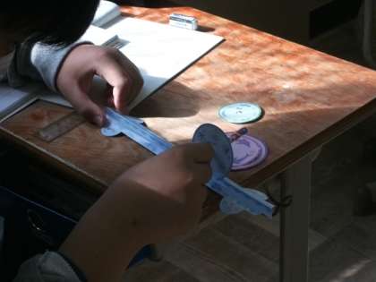 5年生の算数学習の様子です。円の直径と円周との関係を調べています。