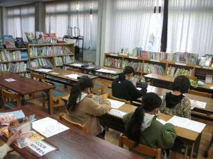 4年生は,図書館で読書ノートの記録を作成していました。