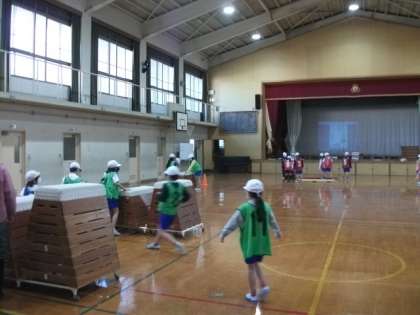 2年生は,跳び箱運動の,準備をしています。