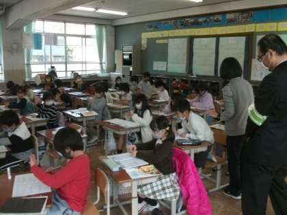 午後に,下鴨警察署のスクールサポーターの方にご来校いただき,全教室で子どもたちが頑張って学習している様子をみていただきました。