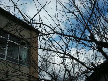 中庭の桜の木には,冬芽がついてきました。