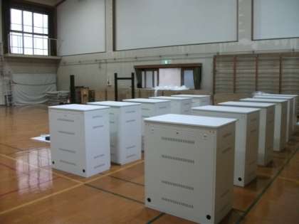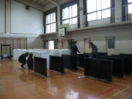GIGAスクール構想にかかわって,タブレットや新しい大型テレビ,充電用保管倉庫などを搬入していただきました。