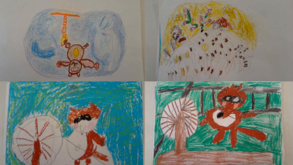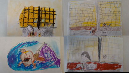 お気に入りの場面をカードにかきました。場面への思いがそれぞれ込められていて,どの絵もとても素敵に仕上がりました。