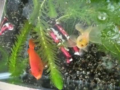 実は出目金の「でめちゃん」が,元気がなかったので,しばらく別水槽で休んでいました。先週末からみんなといっしょの水槽にもどり,今日はゆらゆらと泳ぎ始めていました。