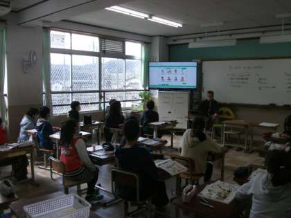 5年生は,外国語科でピクチャーカードを見ながら発音の練習(復習)をしています。