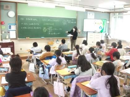 5年生は理科の実験に取り組んでます。