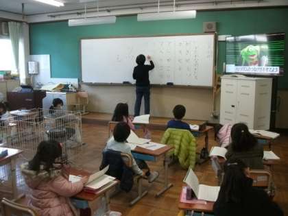 1年生は,カタカナの練習をしていました。1組も2組も,子どもたちはとてもよい姿勢で丁寧に取り組んでいました。