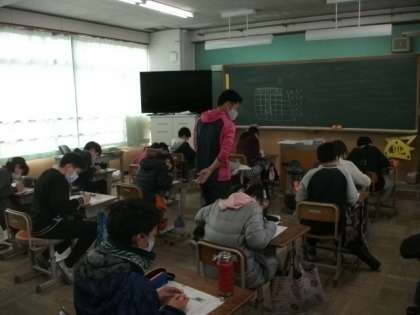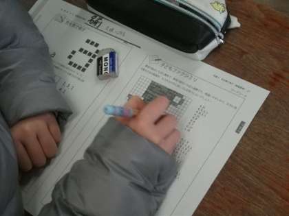 テーマは「情報」で,2進法の考え方やFAXの仕組みについて学習をしています。