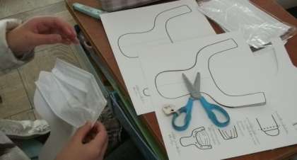 4年生が,テーブルマナーマスク作りに取り組んでいます。