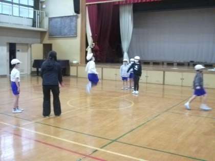 3年生は,体育館で大縄の連続跳びに挑戦しています。