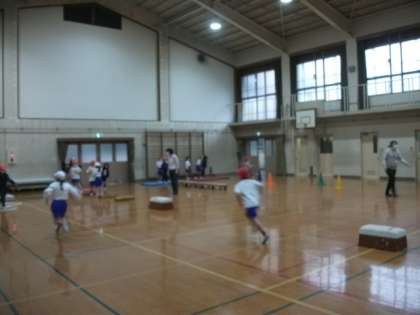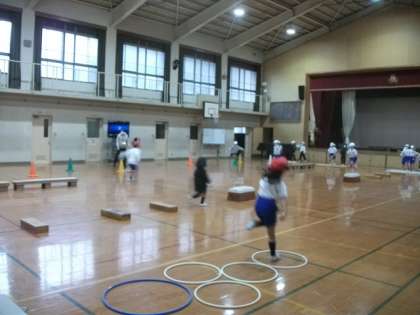 コースを作って,いろいろな動きをしながら前に進み,陣取りをしています。
