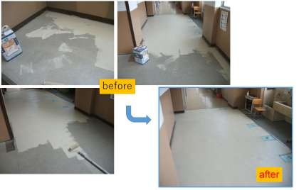 本館東階段踊り場,トイレ前の床塗装をしました。