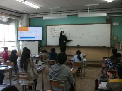 5年生は,「人文字をつくるために,何人が必要か」を考えています。
