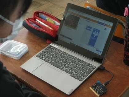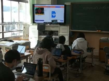 6年生は,総合的な学習の時間で「情報」をテーマにプログラムの仕組みについて学習をしています。先日は「二進法」を使って「表示」する仕組みについて学習をしました。今日は,GIGAタブレットを使ってマイクロビットのプログラミングに挑戦しています。基本的なことを学んだあと,それぞれのアイデアでプログラムを工夫していきます。