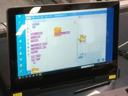スクラッチを使って,キャラクターの動きに変化をつけているところです。