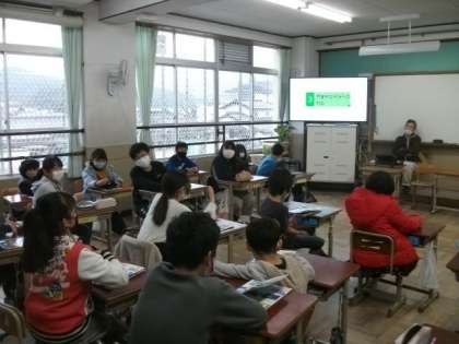 5年生は,保健の学習の時間です。スライドショーを見ながら,話し合いを進めています。