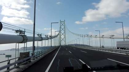明石海峡大橋前で写真を撮りました。とても良いお天気です。