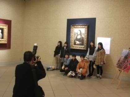の前で記念撮影をしています。
