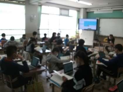 「大造じいさんとがん」を読み進める中で,自分の考えをロイロノートを使って書込み,データを「提出箱」にいれてお友達全員の考えを共有しています。