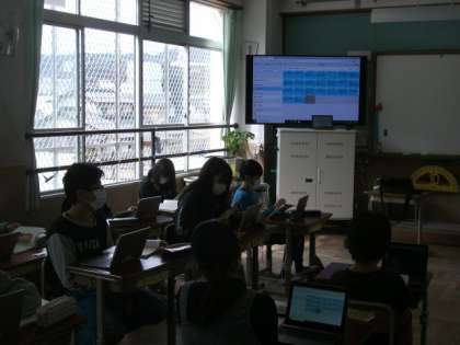 5年生は,国語の時間にGIGAタブレットを使っています。