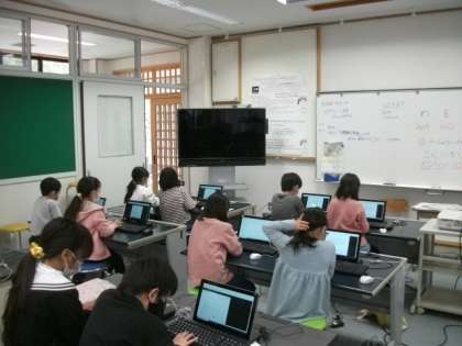 2年生は,コンピュータ室と図書館で学習を進めています。