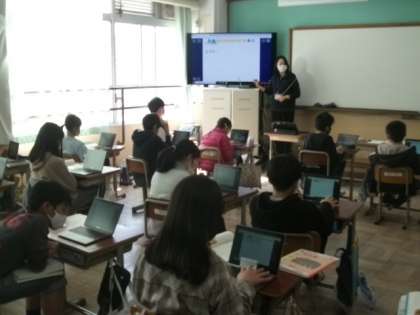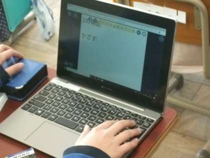 5年生は,GIGAタブレットを使って国語の学習を進めています。今日は意味調べをしてロイロノートに記載し,それらを提出箱に入れて共有しています。