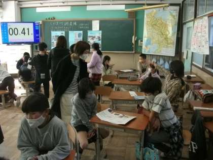 4年生は鞍馬川について調べたことをポスターにまとめて意見交流をしています。