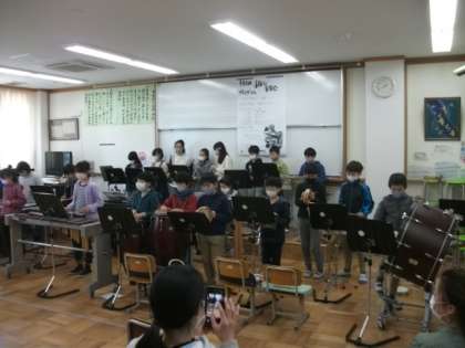 音楽室では,合奏を中心にしたミニ音楽発表会が開かれています。