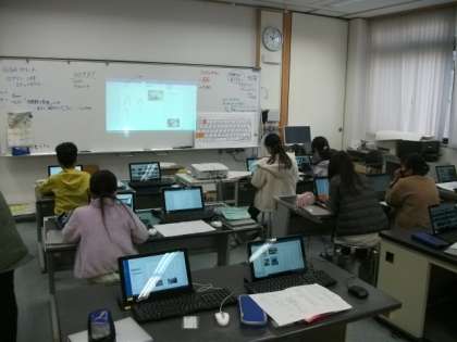 コンピュータ室で作品作りをしたあと,印刷をしています。