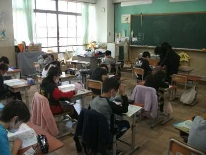 3年生は,1年間の復習問題に取り組んでいます。