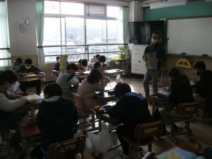 クイズ形式で,地名探しをして地図帳に慣れ親しんでいます。